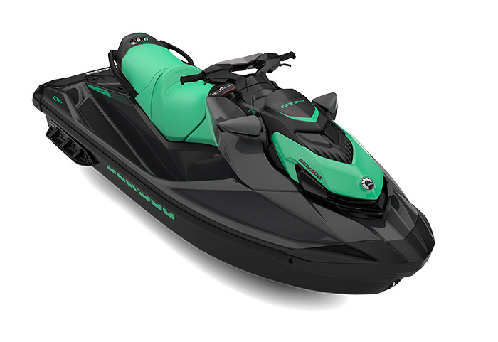 O Sea-Doo GTI SE 170 2026 oferece estilo, conforto e potência em uma nova combinação de cores: Verde Laguna e Preto Eclipse.