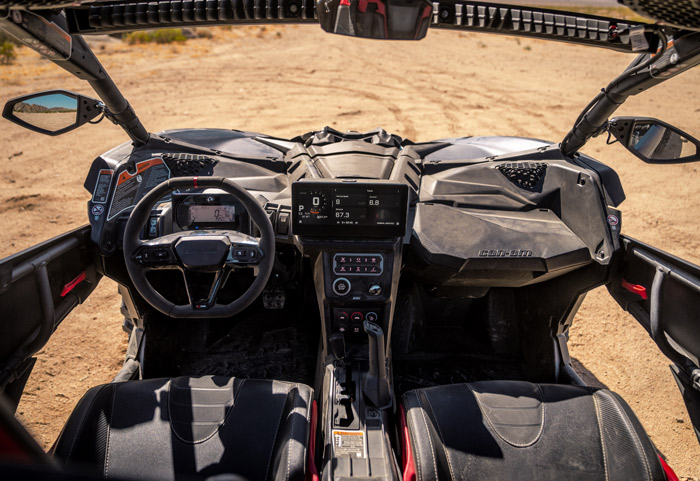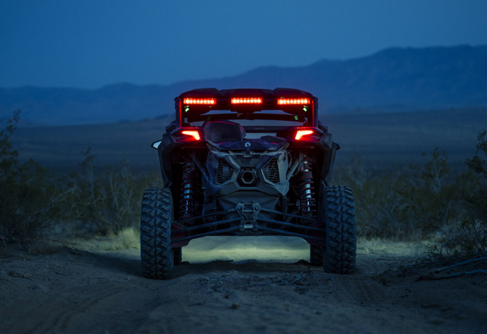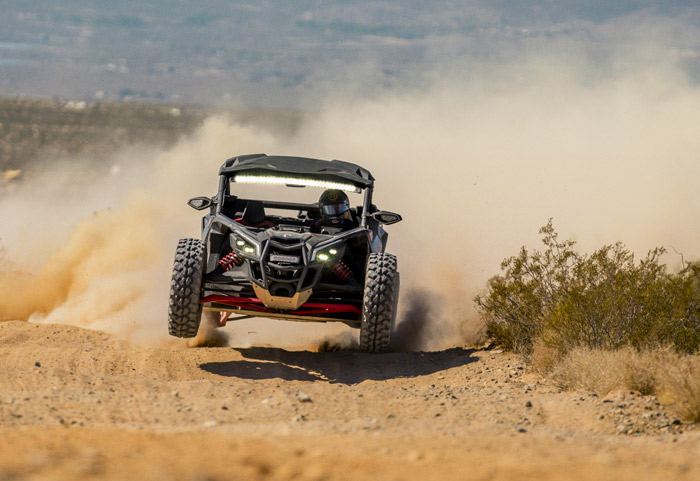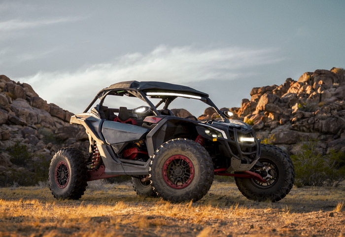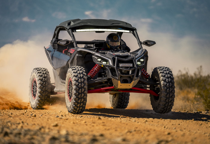 Can-Am Maverick X3 X RS Turbo RR 2026 equipado com suspensão Smart-Shox com válvula DDA. Potência e esportividade com motorização ACE com turbo e intercooler e 200 HP de potência, Sistema de Aceleração Inteligente (iTC), transmissão CVT com Sistema de Resposta Rápida QRS-X, cabine Ergo-Lok com design focado no piloto, diferencial dianteiro autoblocante Smart-Lok, Direção Dinâmica Assistida (DPS) de modo triplo, amortecedores Fox 2.5 Podium Piggyback com by-pass e Smart-Shox, suspensão dianteira e traseira com curso de 22 e 24 polegadas e rodas de 15 polegadas em alumínio equipadas com pneus XPS Trac Force 32.